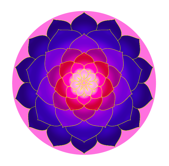 \tikz\mandalac[magenta!30!,magenta,purple,violet,];